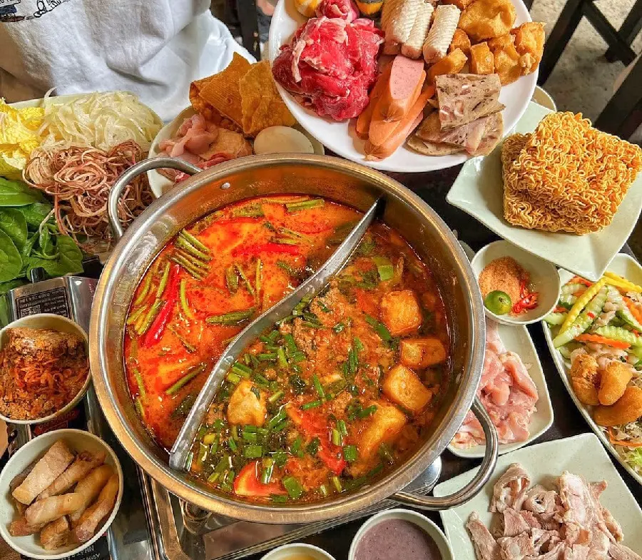 Lẩu Vương là một trong những điểm đến buffet ở Trung Hòa được yêu thích nhờ sự kết hợp độc đáo giữa lẩu riêu, lẩu Thái và thịt nướng kiểu Hàn. Thực đơn phong phú mang đến nhiều lựa chọn hấp dẫn cho những buổi họp mặt bạn bè hoặc gia đình.