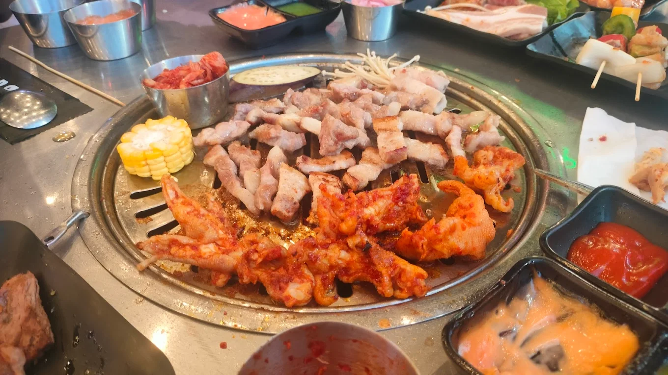 Về thực đơn, Bogo BBQ phục vụ phong cách nướng Hàn Quốc với nhiều loại thịt được tẩm ướp đậm vị, kết hợp rau củ tươi và quầy line đồ Hàn, tráng miệng cùng nước uống refill. Mức giá khoảng 199.000 VNĐ/người được đánh giá là hợp lý so với chất lượng món ăn và không gian.