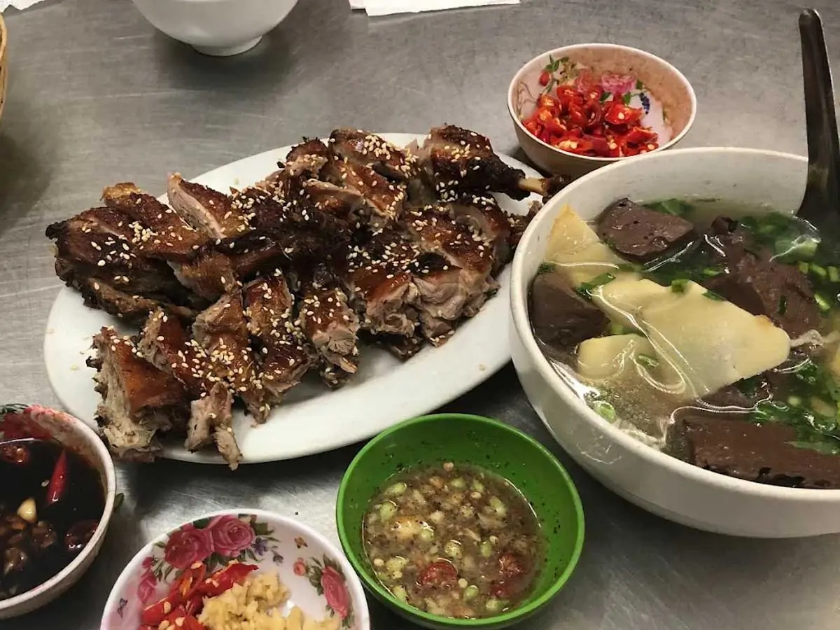 Món vịt nướng tại đây được đánh giá là “best” bởi nhiều thực khách. Thịt vịt được tẩm ướp kỹ lưỡng với mật ong và các loại gia vị đặc biệt, tạo nên lớp ngoài giòn rụm, bên trong mềm mại và thấm đẫm hương vị. Một thực khách từng nhận xét: “vịt nướng ở đây thơm mà ngon”, “sốt ngta ướp ngon vch”.
